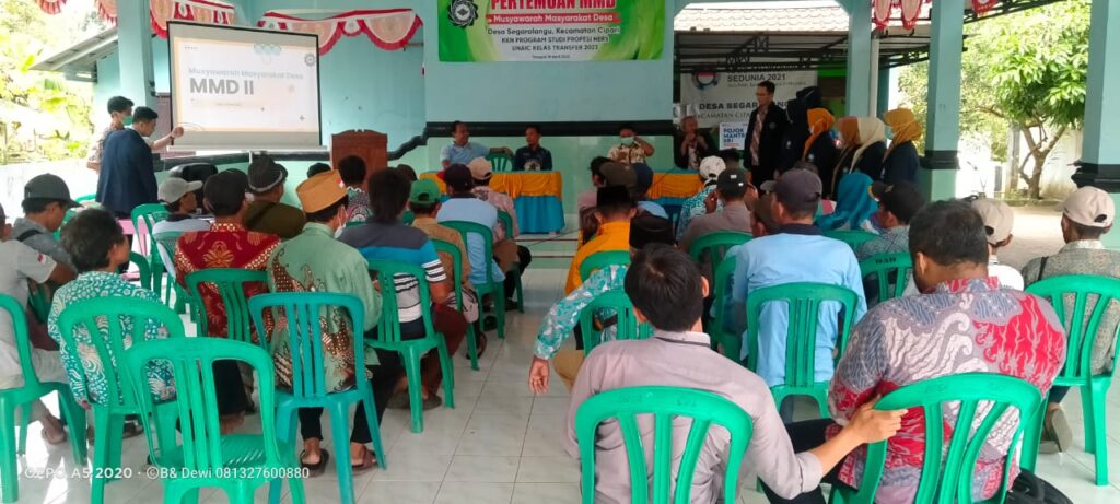Musyawarah Masyarakat Desa (MMD) adalah forum diskusi yang diadakan di tingkat desa untuk membahas berbagai isu dan permasalahan yang berkaitan dengan kehidupan masyarakat desa. Dalam kasus MMD di Desa Segaralangu, topik yang dibahas adalah kesehatan terkait stunting dan hipertensi.