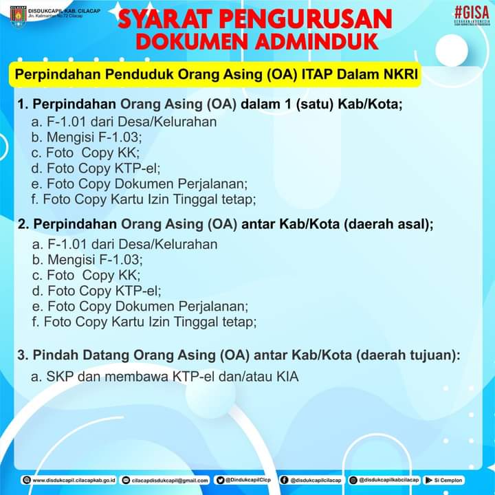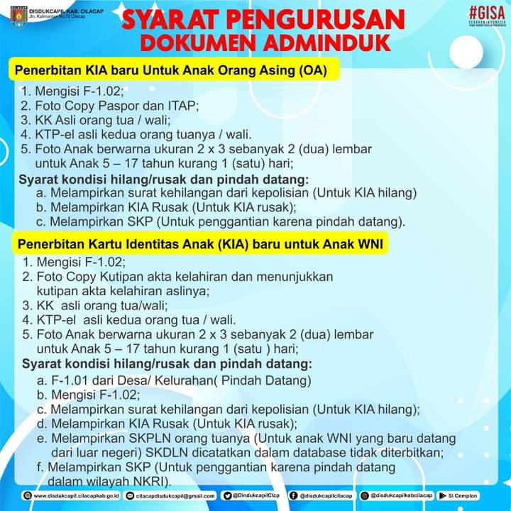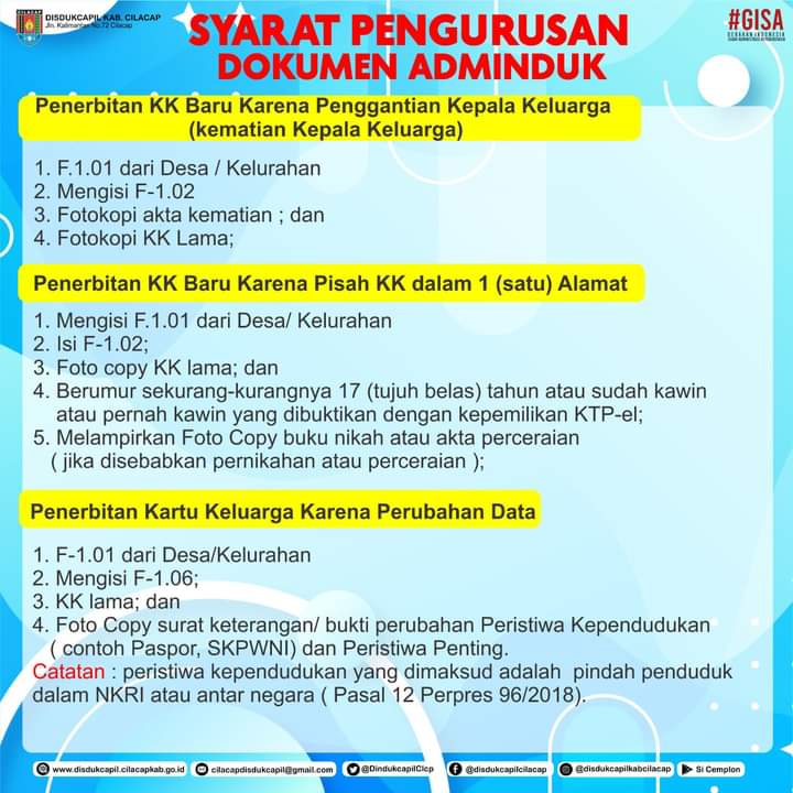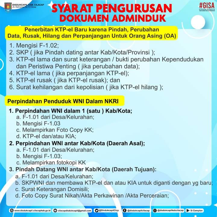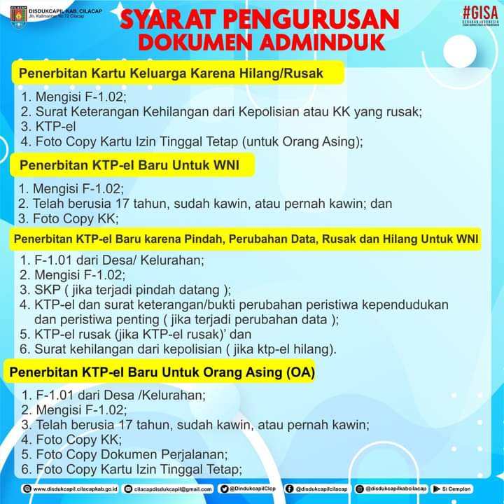 Berikut adalah syarat mengurus dokumen kependudukan di Disdukcapil Cilacap agar dapat menjadi pedoman bagi masyarakat yang akan mengurus dokumen kependudukan.